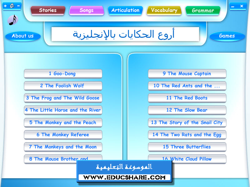 Grammar - Exercices - Gofts - Songs - Conjugaison - Vocabulary - Articulation